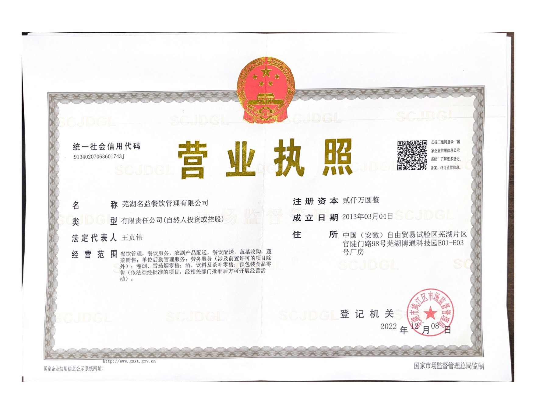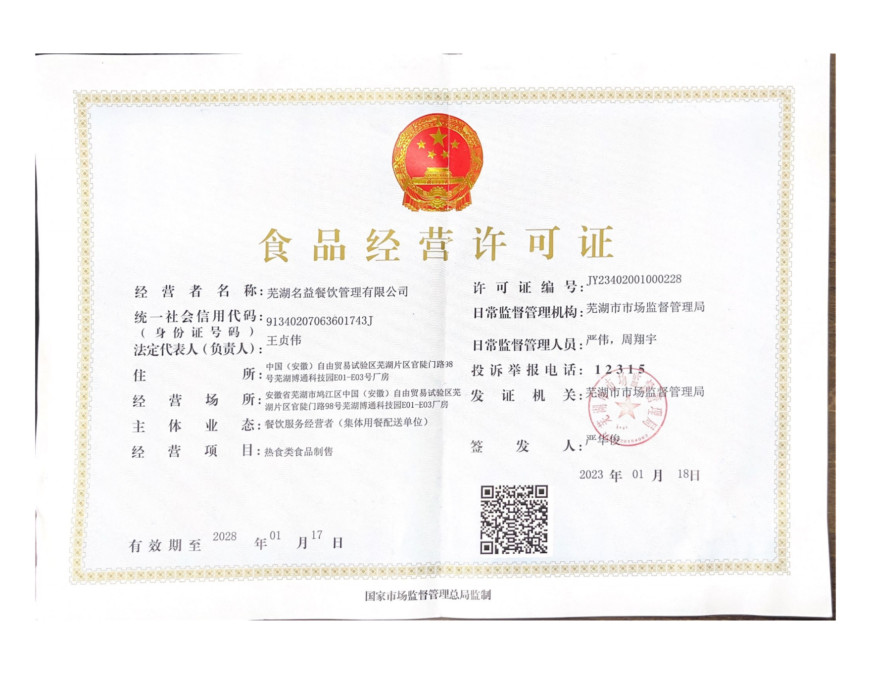 地址:蕪湖市鳩江區(qū)官陡門路98號博通科技園名益餐飲管理有限公司
